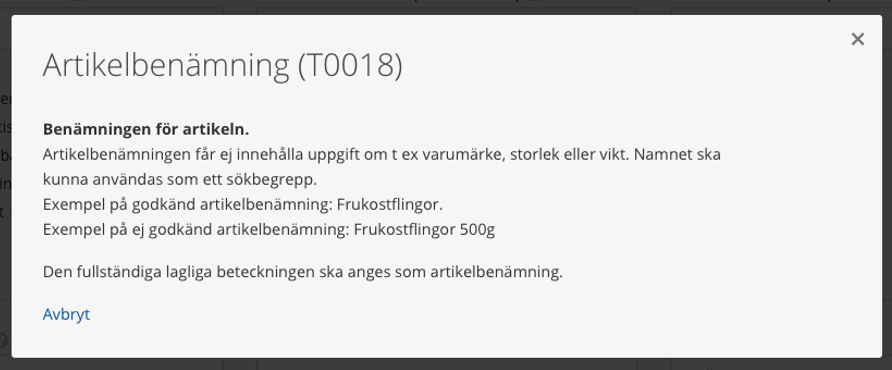 För varje informationsfält finns det tillhörande hjälptexter där definitioner och hjälp för fältet finns.