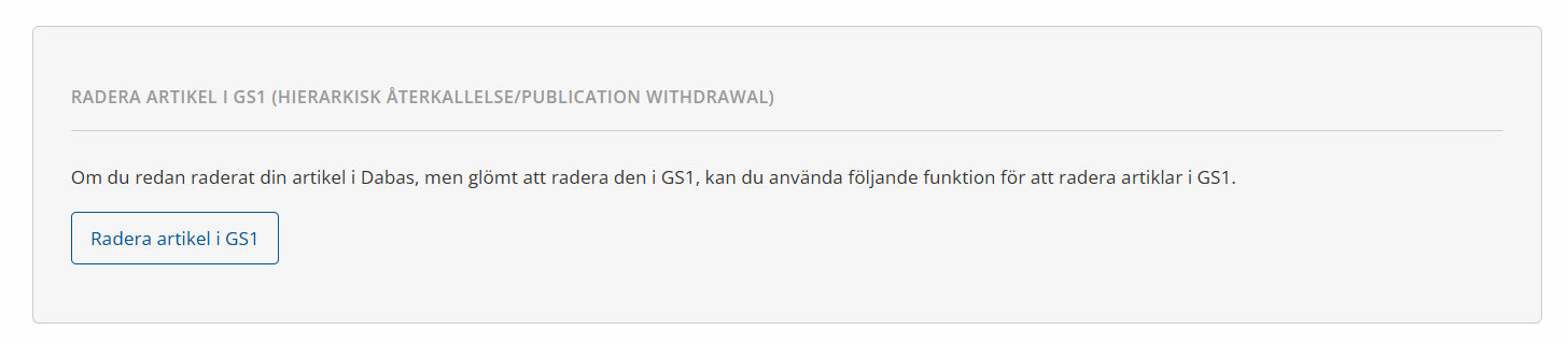 Om du redan raderat din artikel i Dabas, men glömt att radera den i GS1/Validoo, kan du använda följande funktion.